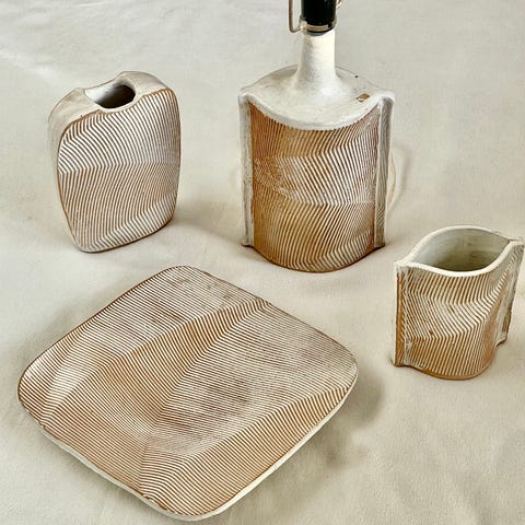 Selger et veldig fin vase i keramikk fra 70 tallet. Vaset er produsert i Danmark og ligner veldig på arbeidene til Frank Milo Tromborg. Den har et stempel på undersiden men er vanskelig å tyde hva det står