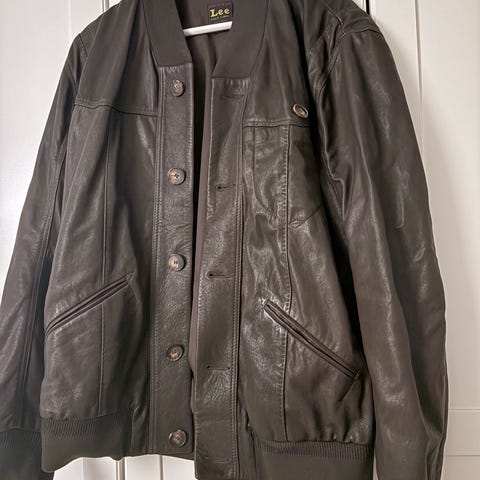 Levi's Skinn Jakke i brun farge, størrelse L. Jakken er laget av skinnmateriale og er designet for menn.