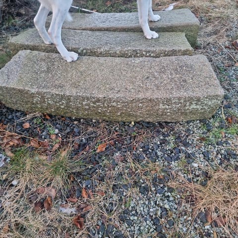 Grå granitt hage kantstein i ulike størrelser. Steinene kan brukes til å lage kanter i hagen eller som dekorative elementer i uteområder.