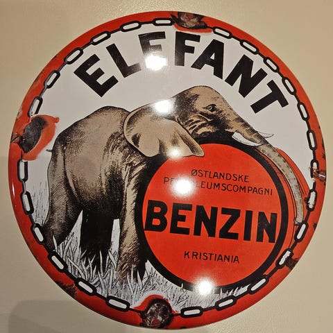 Selger videre et så og si ubrukt skilt av A/S Vestlandske Petroleumscompagni med påskriften "Tiger - Benzin". Bergen