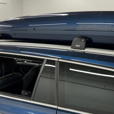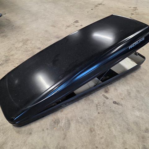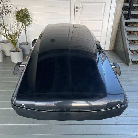 Skiguard takboks i svart farge med låsemekanisme. Egnet for oppbevaring av skiutstyr og annet bagasje på biltak. Romslig design for effektiv lagring.