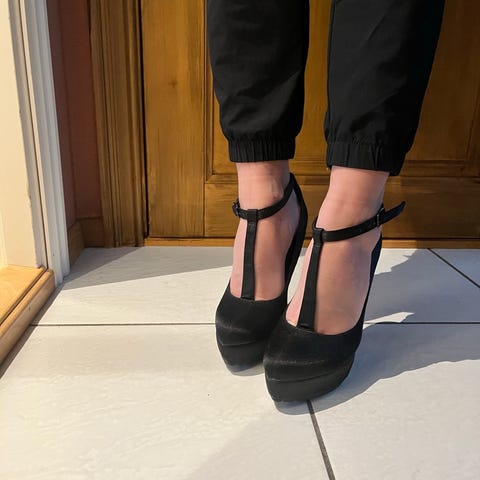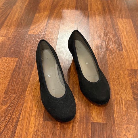 Pent brukte høyhælte pensko i str 39.