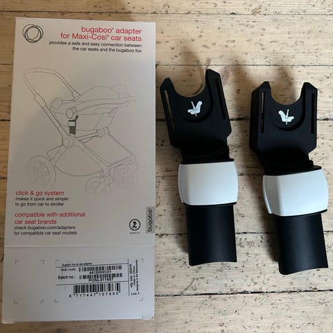Helt ny og ubrukt Bugaboo bilstoladapter selges pga fikk to stk til jul, men får ikke returnert uten kvittering. Ny pris 670kr.