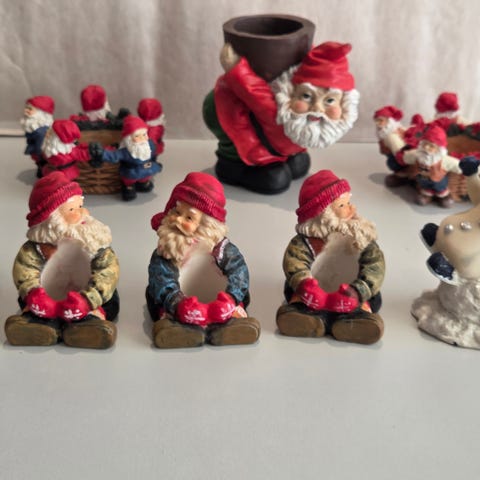 Kjempefin og stor nisse selges fordi den ikke blir brukt hos meg lenger. Veldig fine farger og detaljer. Høyden på den er ca 27 cm, bredden er 28 cm og dybden er 26 cm. Den er svært velholdt, har ingen skader og er tung.