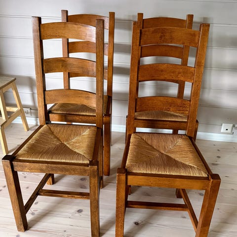 Stolene er stabile og fungerer fint, men setene har tydelige flekker/slitasje (se bilder).