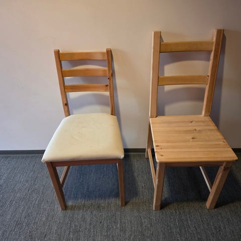 Gir bort 4 solide spisestuestoler i tre.