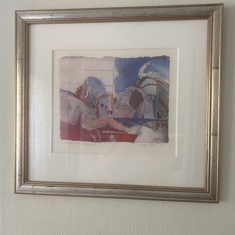 Et av Jørgen Holens flotteste bilder til salgs. Kjøpt på en av hans mange Oslo-utstillinger, hos Galleri Kjeldaas i 2010. Har kvitteringer Sogndalsfødte Holen er kjent for å arbeide med farger og legge lag på lag "før det stemmer", som han selv beskriver det. Det som kjennetegner Holen er den spenstige og interessante overflatestrukturen og selv om bildene har et abstrakt uttrykk, tillegges de gjenkjennelige elementer og dekorative ornamenter.