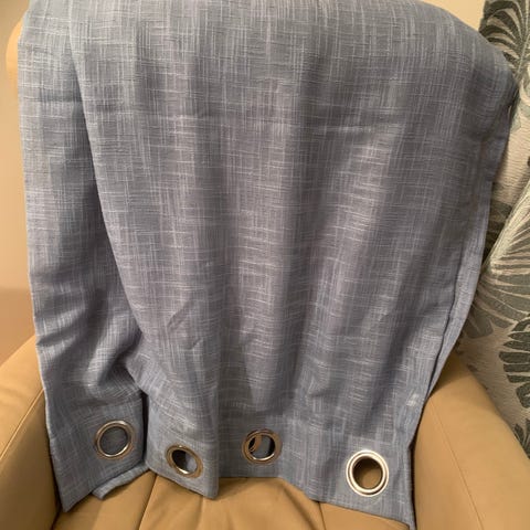 Fine behagelige blå soveromsgardiner. 2 lengder 75 kr pr stk