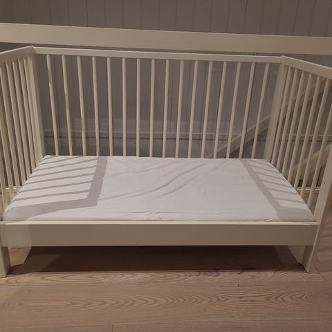 Selger en pent brukt Gulliver sprinkelseng fra IKEA. Madrass kan medfølge om ønskelig. Vært brukt med beskyttelseslaken. Følger også med sengehest fra IKEA som ble kjøpt for ca. 2 måneder siden.