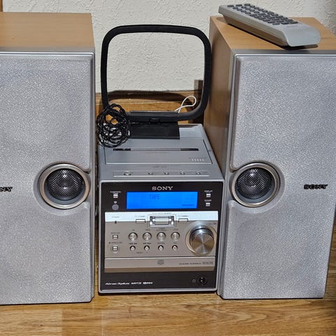 Sony stereo med radio og cd spiller. Fjernkontroll medfølger.