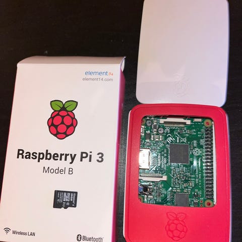 Jeg selger to stk Raspberry Pi 3 B+ med kabinett (ett hvitt og ett blankt, som på bildet) og 16 GB minnekort.