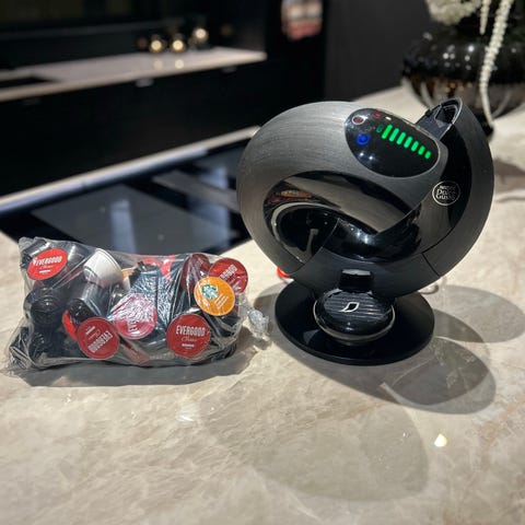 Allsidig kapselmaskin som enkelt lager cappuccino, espresso, latte, vanlig kaffe, sjokoladedrikker og mye mer, alt ved hjelp av kapsler. Den kan brygge både varme og kalde drikker. Maskinen har en avtakbar vanntank på 1,3 liter og slår seg automatisk av etter 20 minutter for ekstra trygghet.