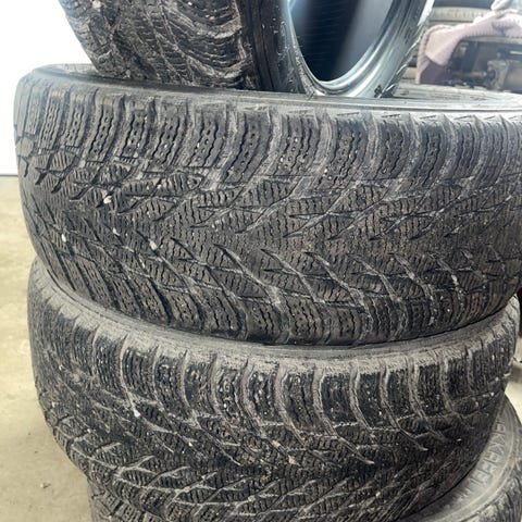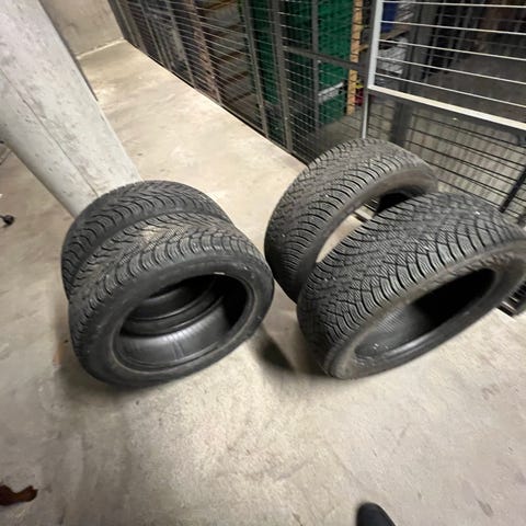 Vinterdekk med ca. 5mm mønsterdybde. Produksjonsuke 44 i 2021. Dekkene selges uten felger.