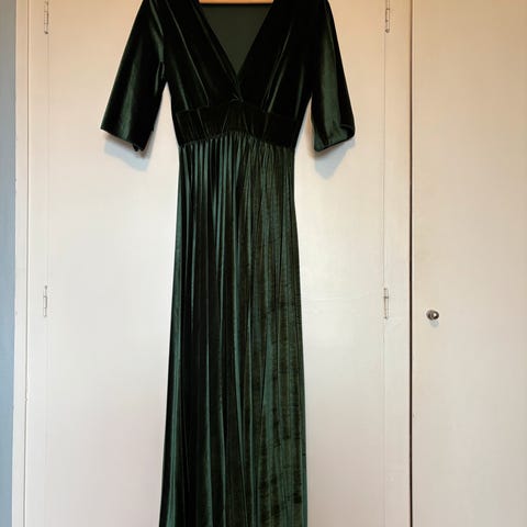 Ellos festkjole i blå fløyel, størrelse 36 for kvinner. Kjolen har et elegant design egnet for formelle anledninger.