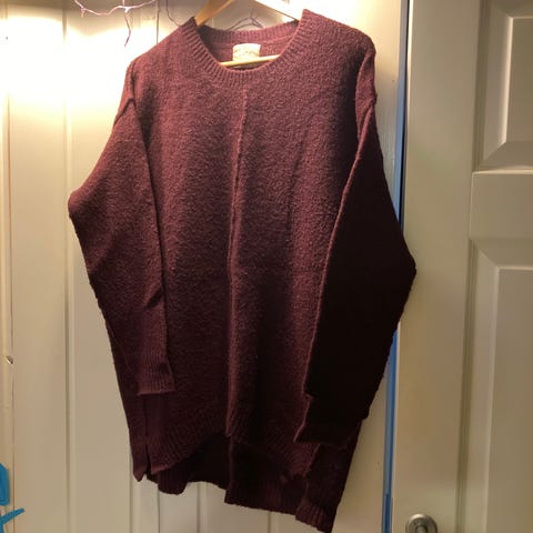 Line of Oslo genser i størrelse M, laget av ull. Genseren har en lys grå farge.