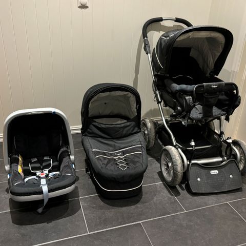 Selger en god Emmaljunga barnevogn med alt utstyr i beige/lys brun. Vognen har:
