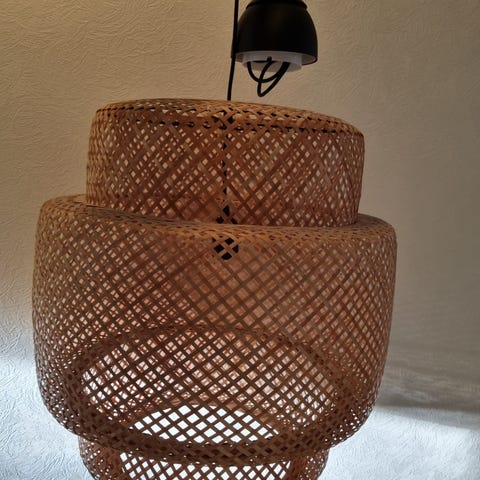 E27 svart taklampe med tekstilledning og amber lyspære fra Clas Ohlson, aldri montert