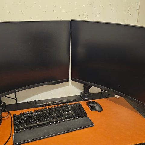 Skjermstativ til to PC-skjermer selges da jeg har gått over til en skjerm. Ingen synlige bruksmerker. Skruer for å feste skjermene følger med.