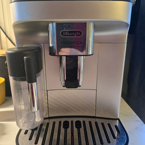 Selger min DeLonghi Magnifica espressomaskin, 3 år gammel, meget pent brukt og i svært god stand. Maskinen fungerer helt som den skal og lager nydelig kaffe av hele bønner. Den har vært jevnlig rengjort og godt tatt vare på. Den har ikke vært i daglig bruk.