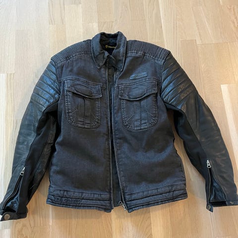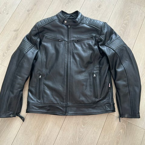 Dainese mc herrejakke i svart farge, størrelse 52. Jakken har glidelåslommer og knappestengning.