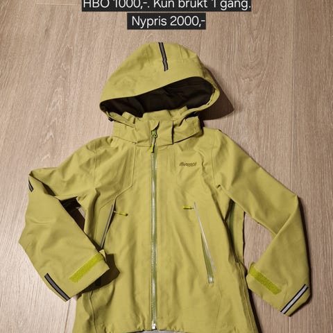Bergans skalljakke i størrelse 128 for gutt. Jakken er blå og laget av polyamid. Den har hette og glidelåslommer, egnet som ytterjakke for barn.