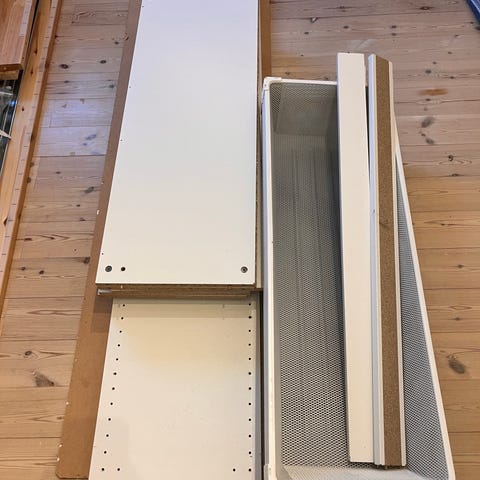 Selger en pent brukt uttrekkbar skohylle (KOMPLEMENT) som passer IKEA PAX garderobestammer.