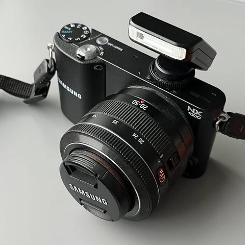 Synlig brukt og mangler deksel og lader, men fungerer fint og ingen riper på linse.