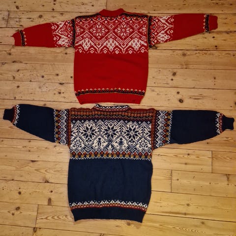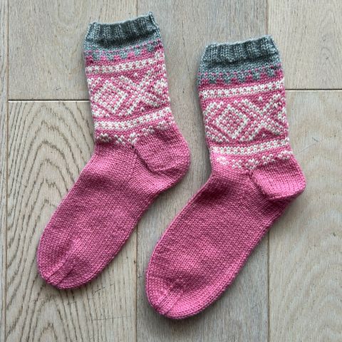 Hjemmestrikket genser og sokker.