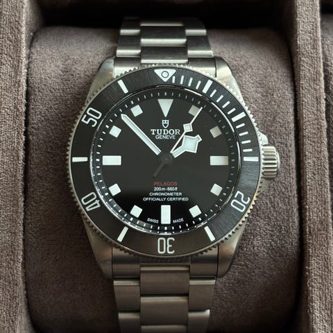 Selger en Tudor Pelagos 39 mm fra 2023, kjøpt ny hos Håkon Lian i desember 2023. Klokken fremstår i svært god stand, uten synlige bruksmerker. Brukt svært pent. Jeg er andre eier.