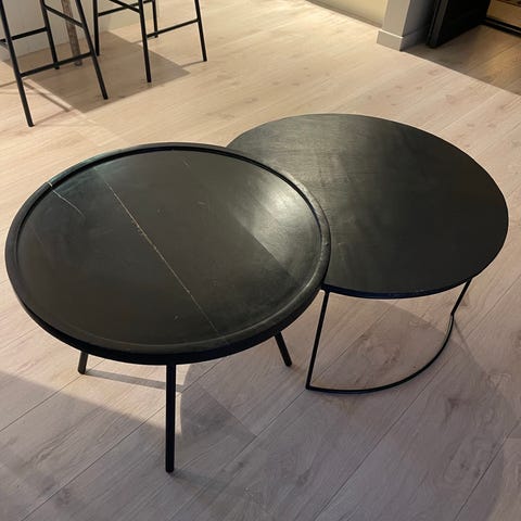 Veldig lite brukt et lite merke på det ene kan evt farges over med svart tusj eller som ny. Ny pris er 799,- per stk jeg selger begge til 1100. Har også sofabord i samme serie. Ny pris på sofabord er 899,- selges for 500,-