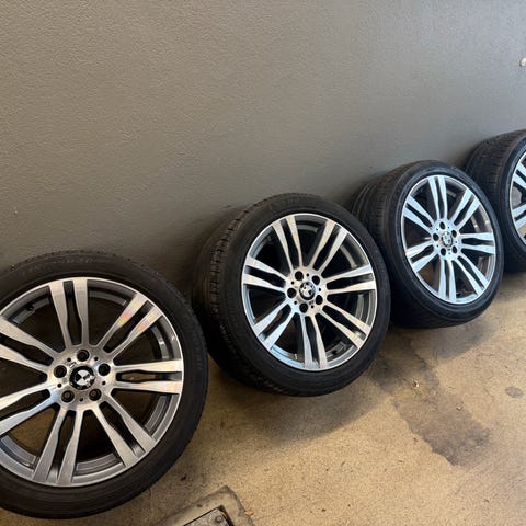 Kjøpt helt nye i august i år. 22" 9,5 alle 4. Dette er suv felger som har 955kg pr felg så dette er kvalitets hjul. Er et lite hakk i den ene felgen som nesten ikke synes. Følger med 1 helt ny ekstra felg i eske som jeg selv fikk med da jeg kjøpte de. Hatt de på min e70. Ved RASK handel så kan det følges med 30mm spacere til bak og med frakt Grenland/Kongsberg. 14000. Holder til på Notodden. 48431643