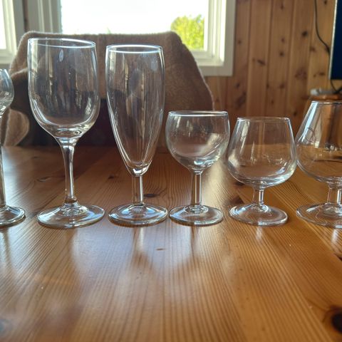 5 rødvinsglass, 4 hvitvinsglass og 2 ølglass fra samme serie av Kremmerhuset selges.