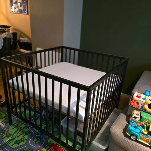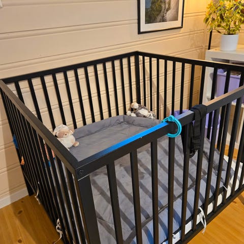 Kjøpt i 2024 Brukt på ett barn. Noe merker på kanten av lekegrinden, se bilde.