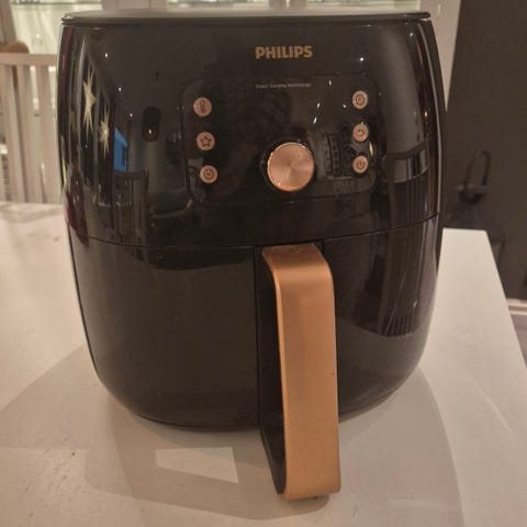 Myria Airfryer med digitalt kontrollpanel i hvit farge. Egnet for tilberedning av mat med varmluftsteknologi. Utstyrt med justerbare innstillinger for temperatur og tid, samt flere forhåndsinnstilte programmer for forskjellige matvarer.