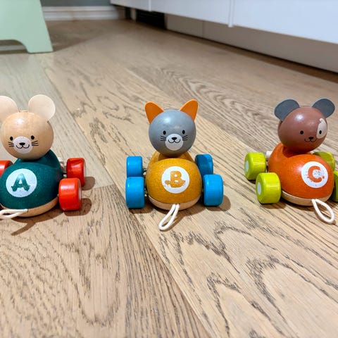 Plantoys racerbil i tre. Økologisk gummitre, naturgummi, økologiske farger, giftfritt lim. Svingbare hjul for en autentisk racingfølelse også i svingene. Treleke