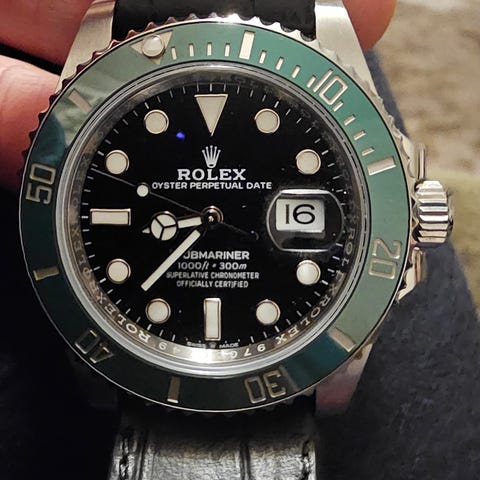 Eksemplaret er sjeldent pent, helt upolert og fremstår nærmest som ny – en sjeldenhet på en snart 20 år gammel Submariner!