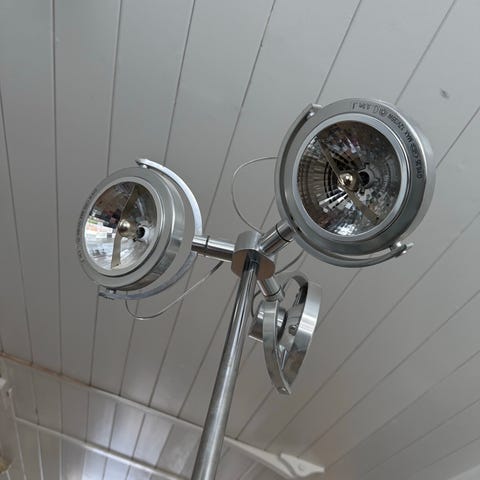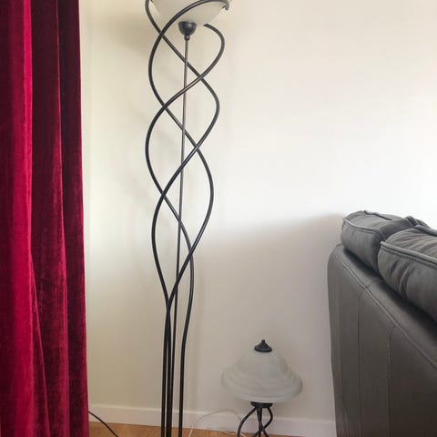 Dekorativ spiralformet gulvlampe med uplight som gir behagelig stemningslys. Passer godt i stue eller soverom. Fungerer som den skal og selges grunnet ommøblering.