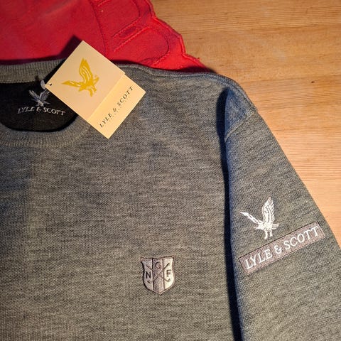 Collagegenser i størrelse XL fra golfturneringen GJENSIDIGE Junior Tour.