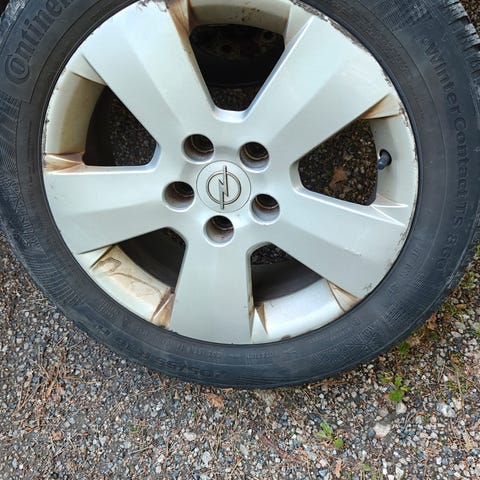 Vinterhjul til Ford med piggfrie vinterdekk fra Continental 195/65x15 på originale alufelger..