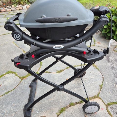 Weber® Q 1400 Elektrisk grill med stativ. Ca 1 år. Nypris 5490. Trekk til grillen følger med på kjøpet.