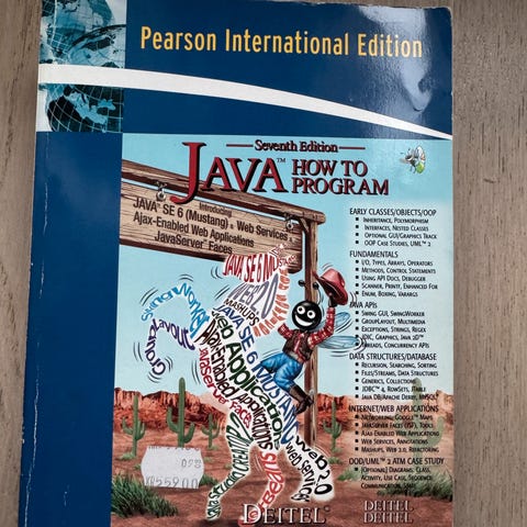 Pearson Java How to Program lærebok, 10. utgave, skrevet av Paul Deitel og Harvey Deitel. Boken dekker grunnleggende og avanserte konsepter innen programmering i Java, egnet for studenter og fagpersoner innen informasjonsteknologi.