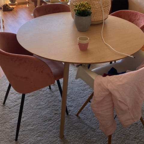 Rundt spisebord selges. Robust bord av god kvalitet. Bordet har synlige bruksmerker, men fortsatt mye bord igjen for pengene. Ø120