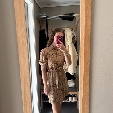 Nydelig kjole selges. Sort fløyel i hals og på ermer, splitt i siden. Lengste lengde ca 102 cm. Sitter veldig fint på. Brukt kun en gang.