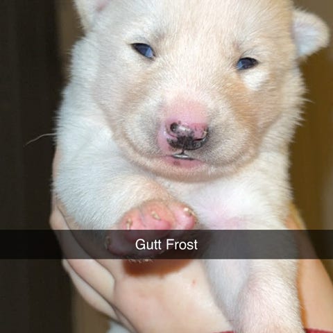 Valp 5: Sky er grå å hvit med flotte markeringer i ansiktet er kraftig frøken❤️