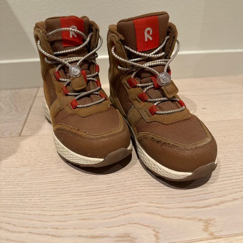 Reima vinterstøvler størrelse 31. Brun og svart. Fin modell som vi har fortsatt bruke i større størrelse. Ser litt skitne ut på bildene, det er kun overfladisk og kan vaskes med klut. Hele og fine, mye bruk igjen.