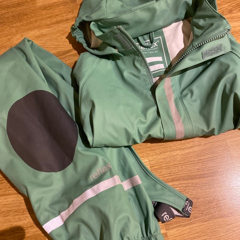 Brukt regndress, av gutt, som er bra stand. Regulerbare stropper til under sko må byttes da de er røket.