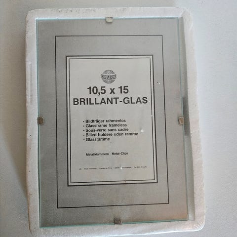 Selger en helt ny og plastforseglet ramme videre. Dessverre er det kommet en skade i øverste høyre hjørne der noe av glasset er knust. Dette er tatt høyde for ved prissetting.
