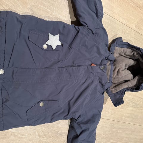 Nesten ikke brukt Mini á ture vinterjakke i str 104 er til salgs. Nyvasket, hel og pen.