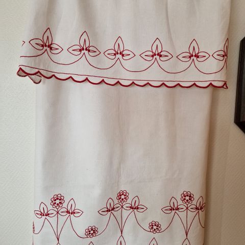 2 Vilma gardinkapper i bomull, med trykt mønster og påsydd rutekant.