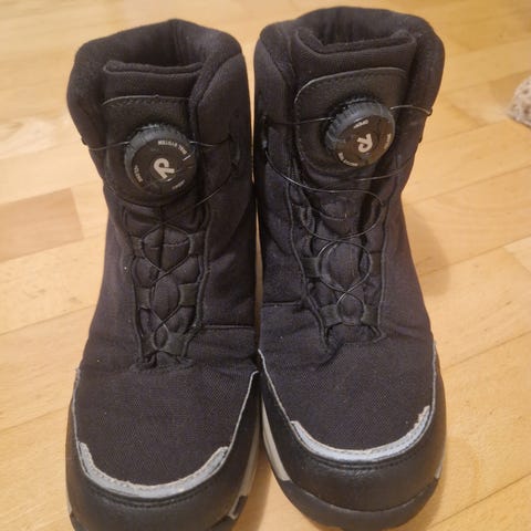 Reima Reimatec barn vintersko i størrelse 38, designet for gutter. Skoene er svarte og laget med materialer som egner seg for vinterbruk, med solid såle for godt grep.